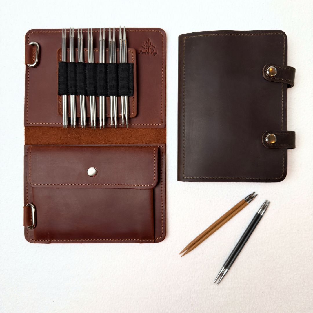 Thread and Maple Innleggsmappe i ekte lær for ChiaoGoo Halvt Pinnesett Smal (2,75 mm - 5,0 mm)