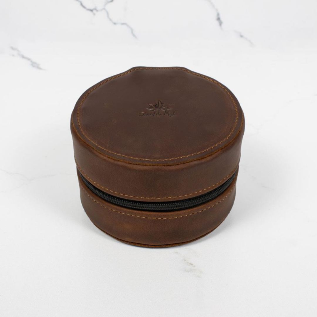Rund tilbehørsboks i ekte lær - Thread & Maple