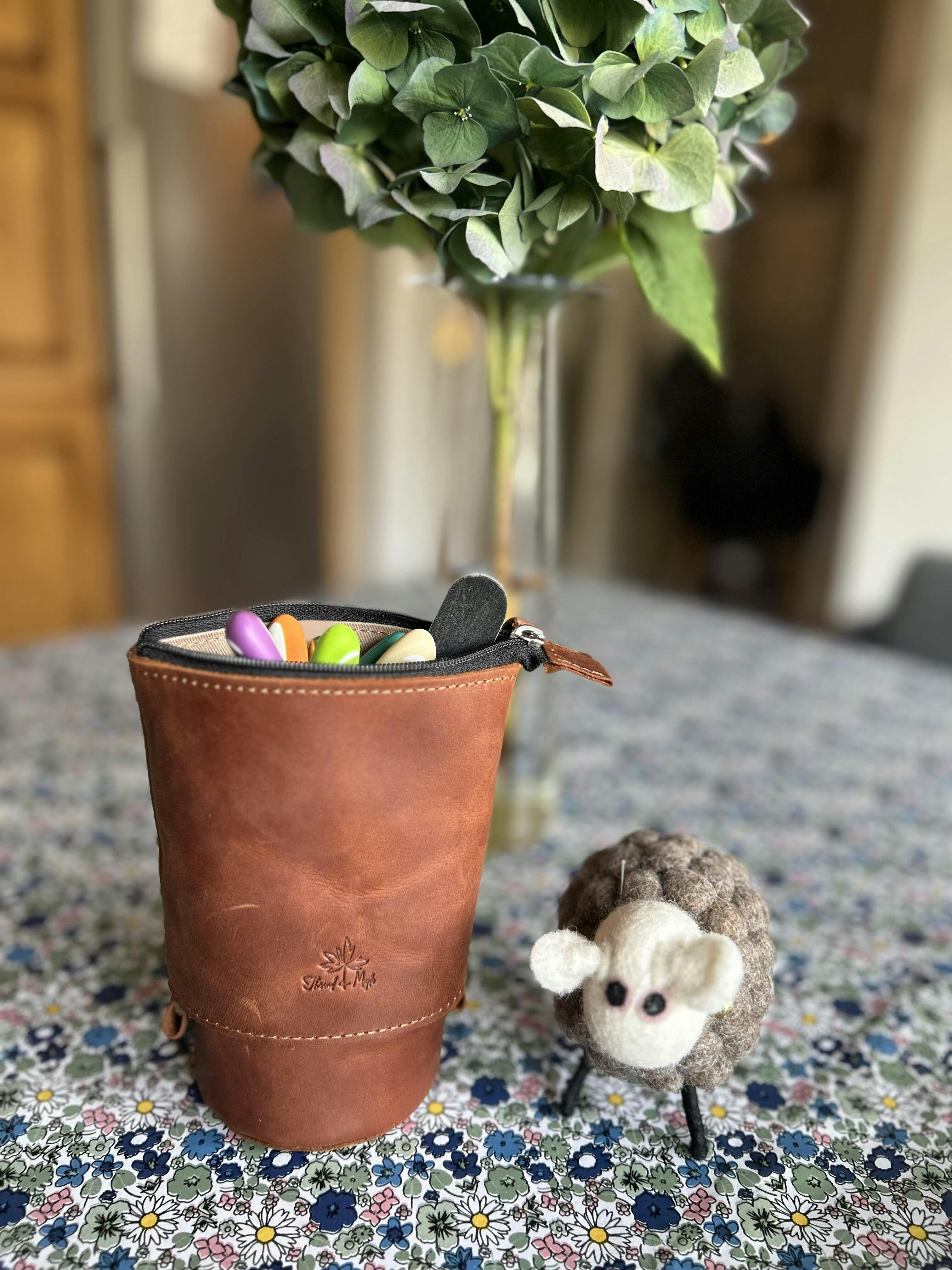 Med en unik design som kan utvides til en stående kopp, gir denne vesken deg full oversikt over innholdet. Den rommer både tykke heklenåler og penner – skreddersydd for kreative sjeler på farten. 🧶✍️
