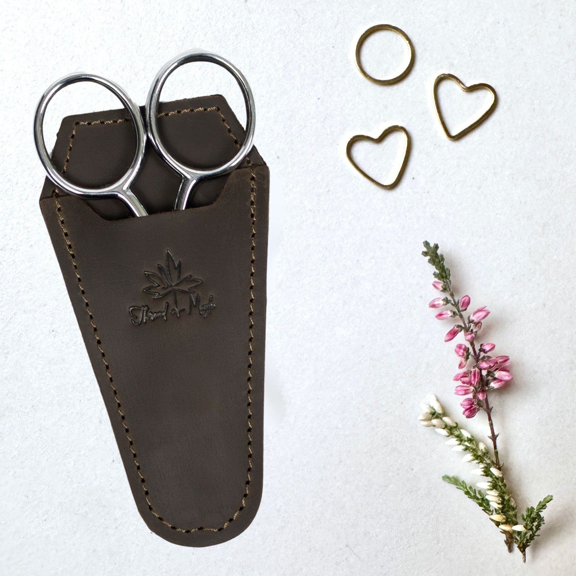 Hold saksene dine trygge med dette magnetiske sakseetuiet, håndlaget i ekte lær, av dyktige skinnarbeidere i Ukraina.
