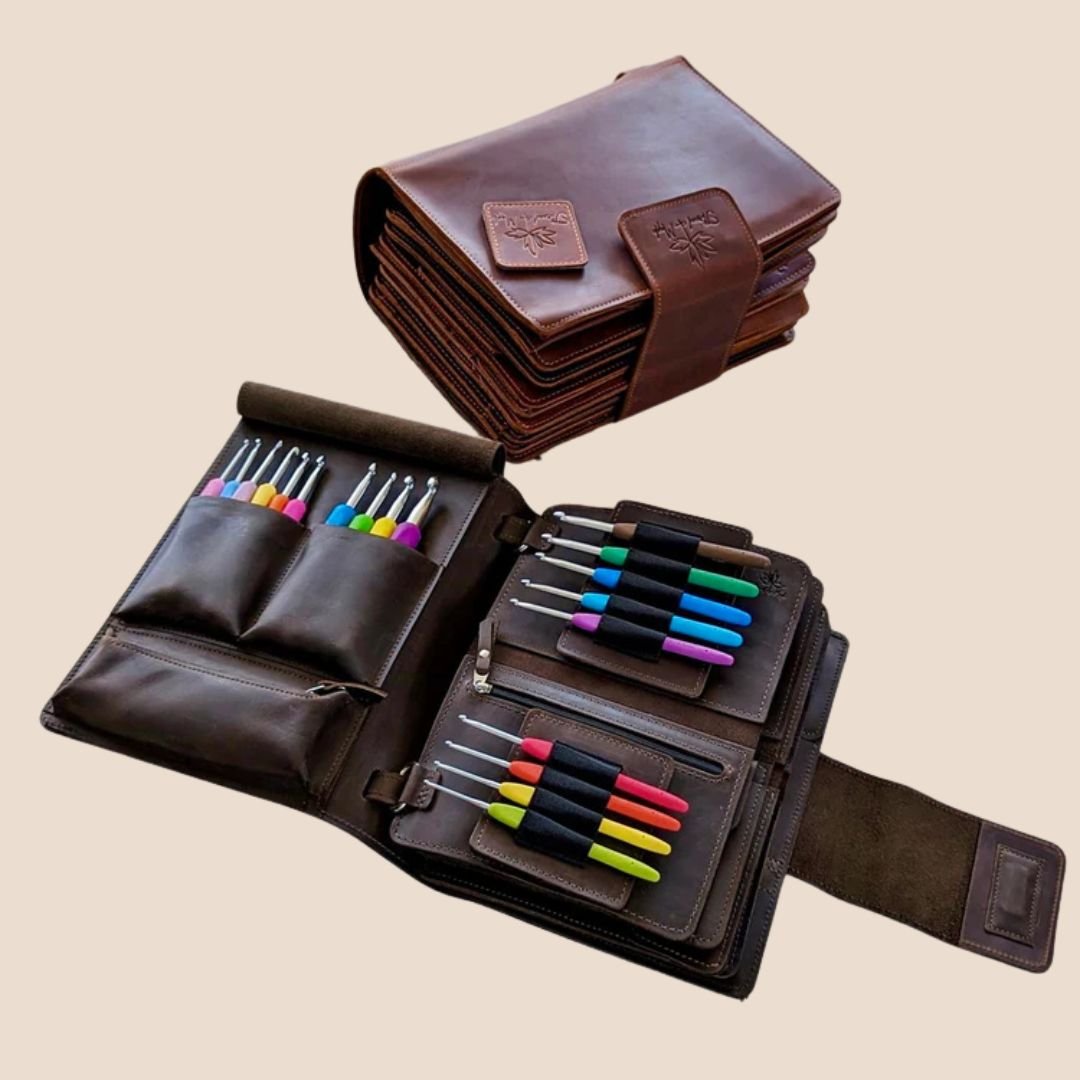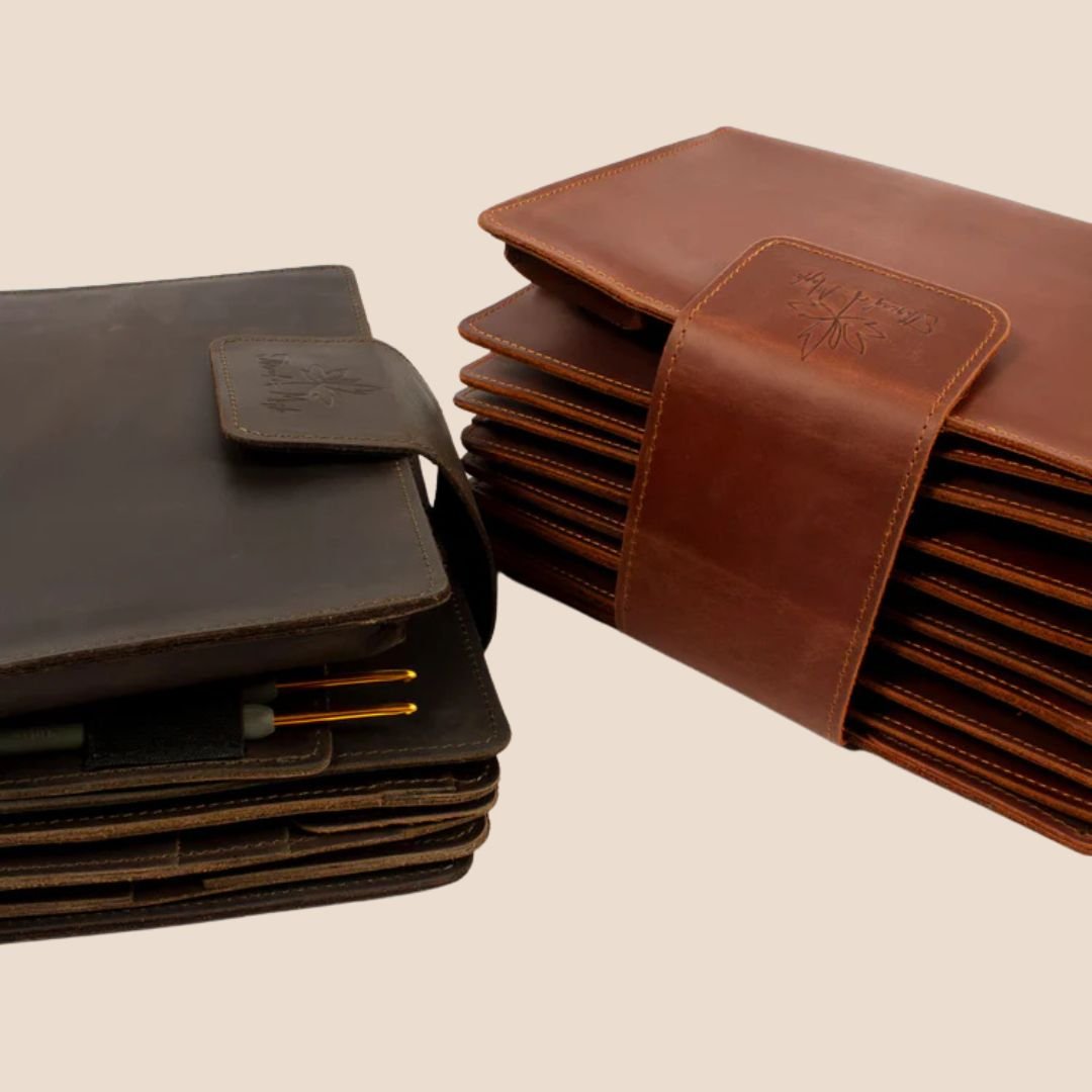 Thread and Maple perm (omslag) i mykt lær – organisér hekleutstyret ditt med stil